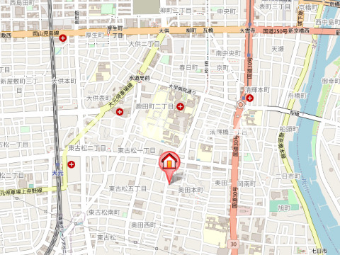 | 交通 | JR宇野線/大元駅 徒歩13分 JR山陽本線/岡山駅 徒歩34分 岡山電気軌道清輝橋線/清輝橋駅 徒歩14分 |
